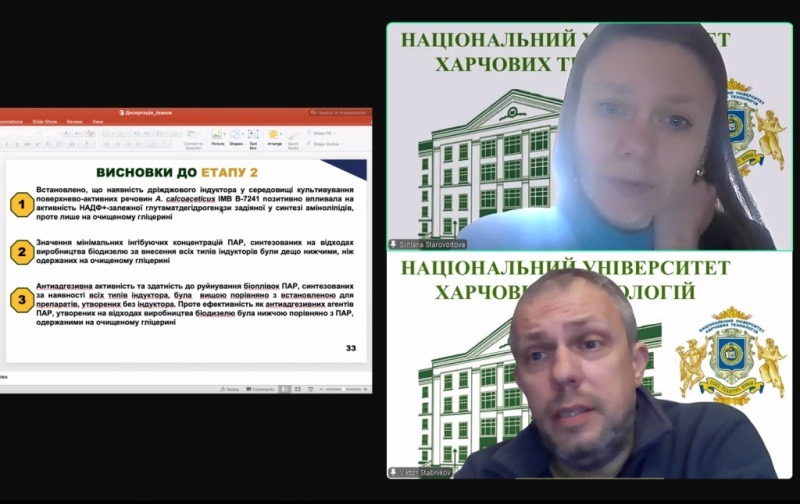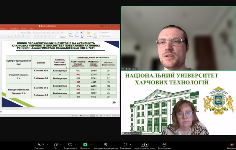На кафедрі біотехнології і мікробіології відбувся науковий семінар здобувача ступеня доктора філософії четвертого року навчання Микити Іванова, на якому він представив результати своїх досліджень за темою дисертаційної роботи. Участь у заході взяли наукові та науково-педагогічні співробітники кафедри.
