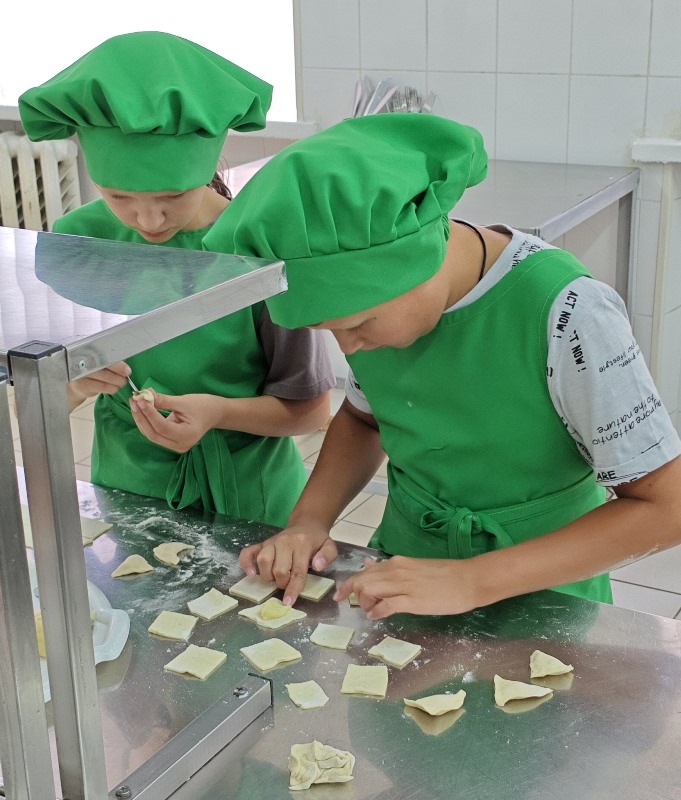 Цього разу учасники знайомилися з основами кулінарної техніки на прикладі приготування українських вареників. Під керівництвом майстрині виробничого навчання Лесі Туровської, яка активно працює з дітьми протягом усього літа, діти вчилися замішувати тісто, формувати різні види вареників та експериментували з начинками. Особливу увагу приділяли техніці заліплювання та акуратності в роботі.