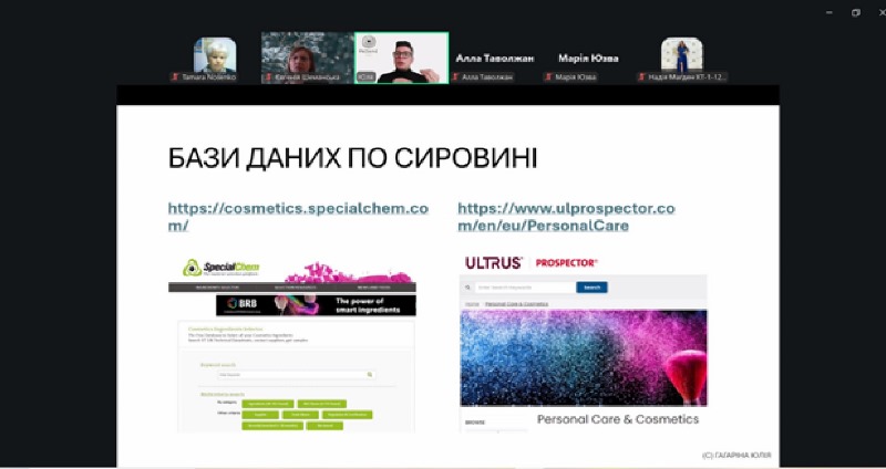 Цього разу на кафедрі технології жирів, хімічних технологій харчових добавок та косметичних засобів відбулася знакова зустріч. Для студентів спеціальностей 161 «Хімічні технології та інженерія» та 181 «Харчові технології», освітніх програм підготовки магістрів «Хімічні технології харчових добавок та косметичних засобів», «Технології рослинних олій, жирових та косметичних продуктів» і бакалаврів «Харчові технології та інженерія» лекцію на тему «Косметичні інгредієнти в доглядовій та професійній косметиці» прочитала випускниця кафедри Юлія Гагаріна.