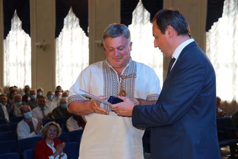 Завершилися збори на приємній ноті. Ректор вручив відзнаки викладачам і співробітникам за результатами роботи у минулому навчальному році.