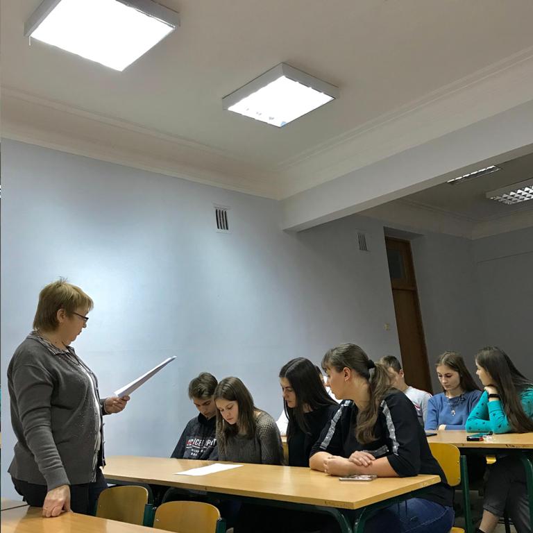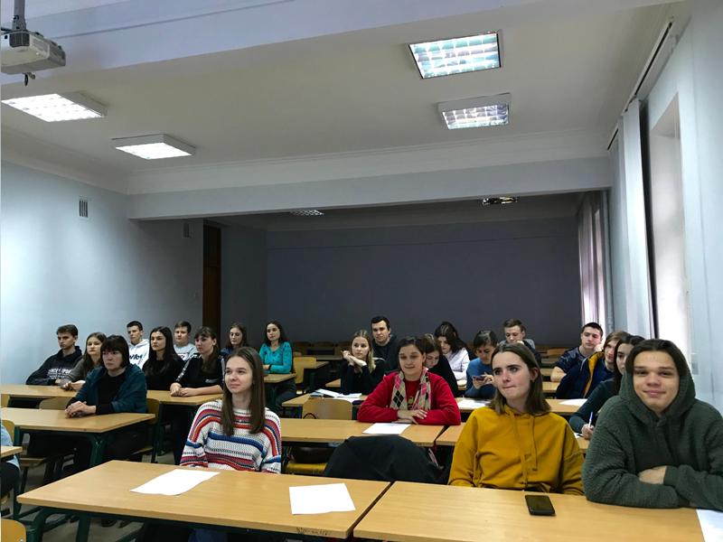 Викладачі кафедри Людмила Юрчук, Лариса Яненко, Анна Харченко підготували перегляд навчально-пізнавального фільму з теми «Travelling round the city and giving directions». Були присутні студенти груп ГС-4, ГС-5, ГС-6 та інші.
