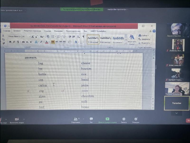 Під час відеоконференції студенти виконували запропоновані вправи, висловлювали свої враження, бачення і думки за темою фільму. Молодь наводила приклади слів, фраз, словосполучень, які виявилися для них новими і цікавими.