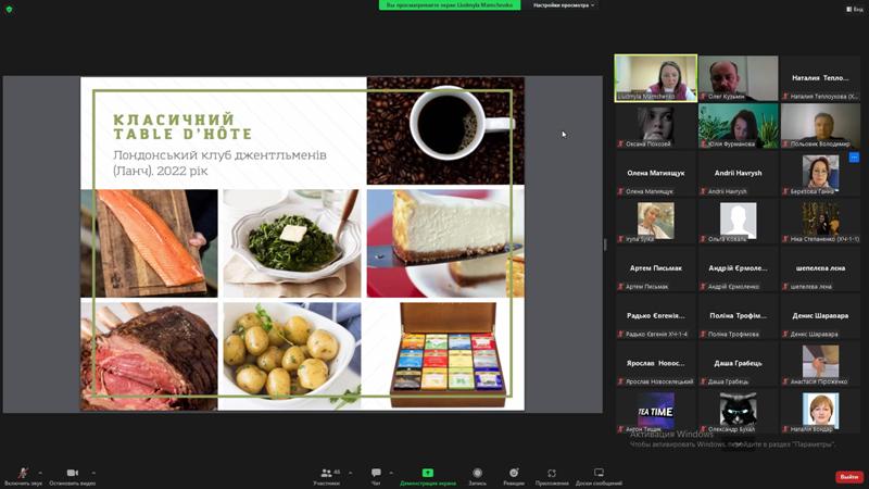 21 листопада 2022 року доцентка кафедри технології ресторанної і аюрведичної продукції Людмила Мамченко прочитала відкриту лекцію «Меню – візитна картка закладу ресторанного господарства» з навчальної дисципліни «Ресторанна справа» для здобувачів освітнього ступеня «Бакалавр» першого року навчання спеціальності 181 «Харчові технології», освітньо-професійної програми «Технології харчування».