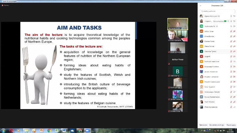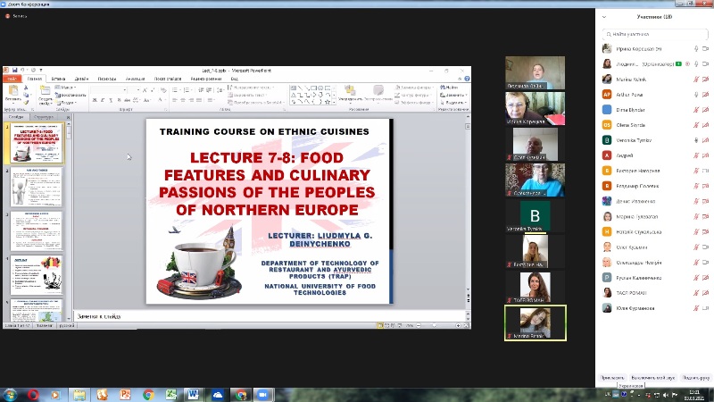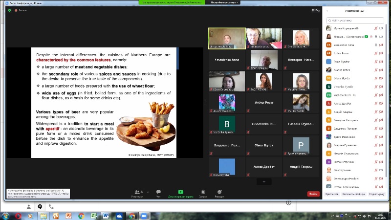 3 березня 2021 року відбулося відкрите лекційне заняття «Особливості харчування країн Північної Європи» доцентки кафедри технології ресторанної і аюрведичної продукції Людмили Дейниченко з дисципліни «Етнічні кухні» для здобувачів групи ГС-3-8а англомовного проєкту.