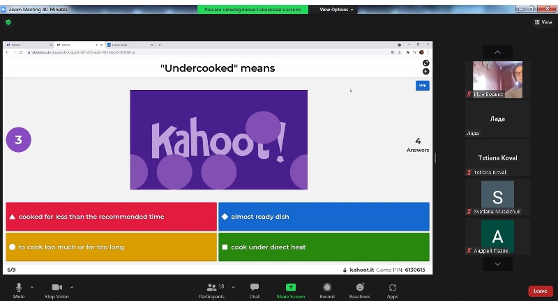 Наступним етапом практичного заняття було опрацювання здобувачами граматичної теми. І насамкінець викладачка запропонувала невелике тестування з теми, що вивчалася на занятті, використавши навчальну платформу Kahoot.