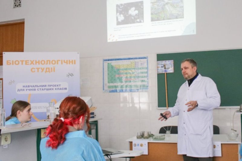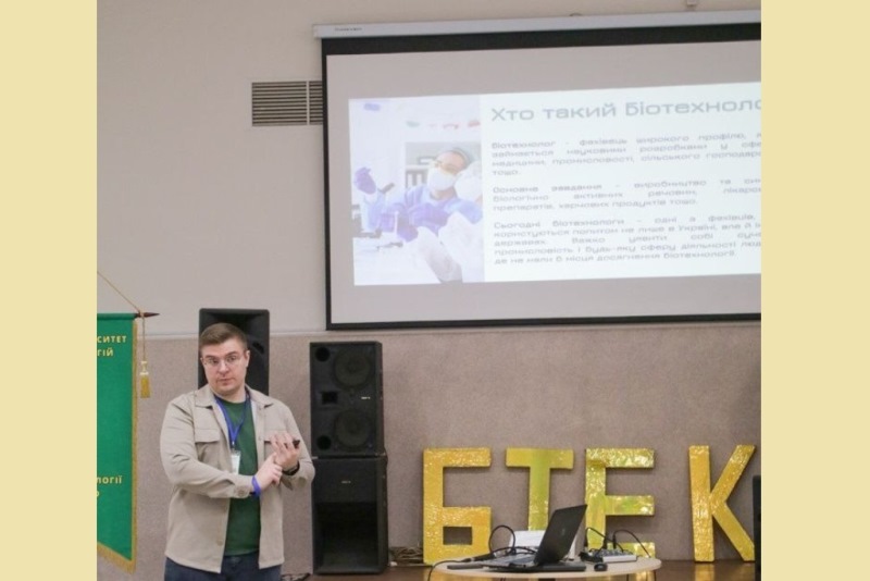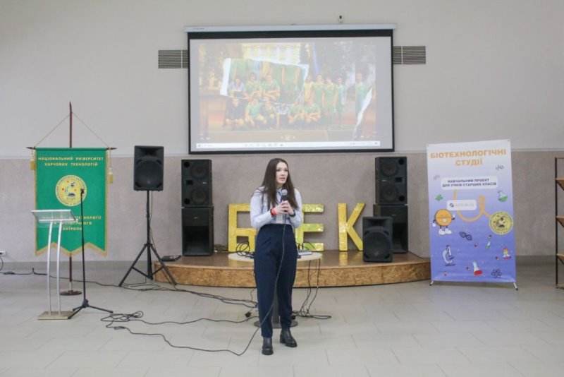 Відкрила роботу студій й тепло привітала здобувачів шкіл, коледжів і ліцеїв деканка факультету Наталія Грегірчак. Привітали учасників і спонсори та партнери Біотехнологічних студій – «Корпорація «Артеріум». А далі представники компанії Ігор Ключка та Марина Герасименко провели лекцію-інтерактив «Біотехосвіта – ключ до успіху». На жаль, через повітряну тривогу захід довелося продовжити у сховищі. Та попри те, що вороги завдали удар по місту, запал школярів до нових знань і мотивація опановувати нові горизонти не згасли. Наприкінці лекції Ігор Ключка провів невеличке опитування і усі, хто правильно відповів на запитання, отримали подарунки.