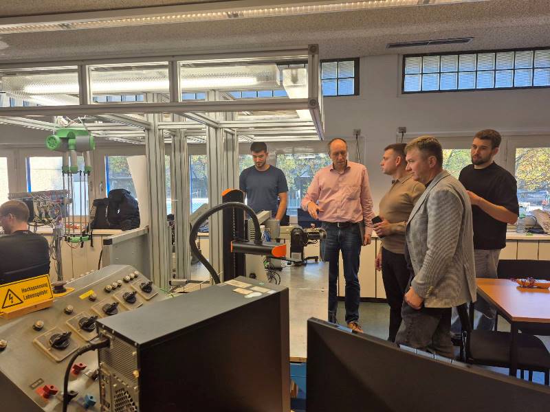Делегація від НУХТ провела низку знакових зустрічей у рамках візиту до Німеччини. Відбулися обговорення з провідними фахівцями Берлінського університету прикладних наук, зокрема з головною координаторкою проекту, професоркою Олівією Кей, професорами Стефаном Юнге і Роналдом Кічербергером, деканом факультету, професором Петером Гобером і відповідальним за міжнародну діяльність, професором Маркусом Пуратом. Учасники делегації також відвідали науково-дослідні лабораторії університету, де ознайомилися із сучасним обладнанням, методиками проведення експериментів і напрямами актуальних досліджень. Ці зустрічі сприяли обміну досвідом, зміцненню партнерських зв’язків між університетами та відкрили нові можливості для спільних освітніх і наукових проєктів у галузі автоматизації, комп’ютерних технологій та інтелектуальних систем управління.