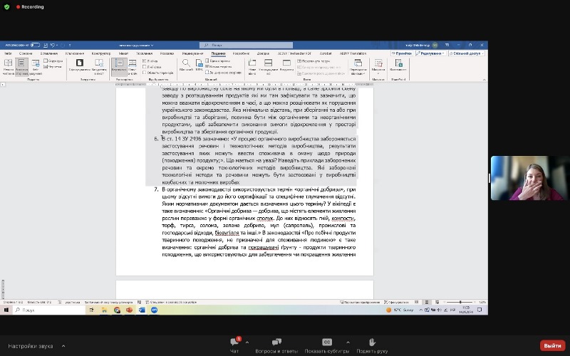 Викладачі кафедри технології хлібопекарських і кондитерських виробів взяли участь в онлайн-тренінгу «Актуальні питання та відповіді щодо вимог органічного законодавства України (Закон України «Про основні принципи та вимоги до органічного виробництва, обігу та маркування органічної продукції» та відповідні підзаконні акти)».
