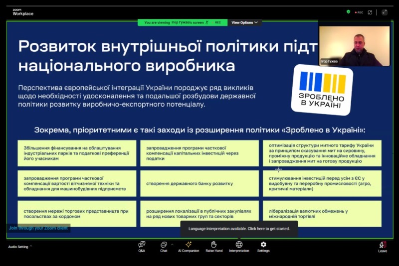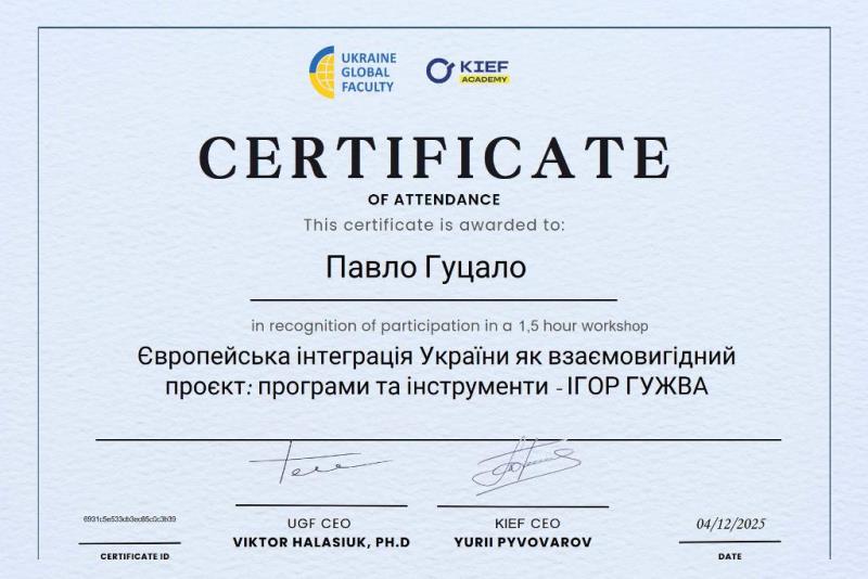 Завершив цикл семінар «Європейська інтеграція України як взаємовигідний проєкт: програми та інструменти», який провів Ігор Гужва, перший заступник директора Державного науково-дослідного інституту інформатизації та моделювання економіки, радник Комітету з питань економічного розвитку Верховної Ради України та заступник голови Наглядової ради НУХТ. У центрі дискусії – економічні переваги євроінтеграції, програми та інструменти ЄС, що відкривають нові можливості для українських підприємств, модернізації виробництва, реформ та інтеграції у внутрішній ринок Євросоюзу. Спікер акцентував на важливості стратегічного використання європейських інструментів підтримки для прискорення трансформаційних процесів і відновлення економіки.