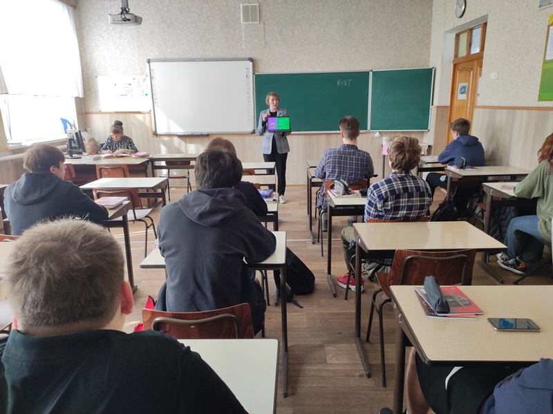 Викладачка ознайомила учнів із освітніми програмами університету, приділивши увагу спеціальностям Навчально-наукового інституту економіки і управління; розповіла про переваги і перспективи здобуття освіти в НУХТ.