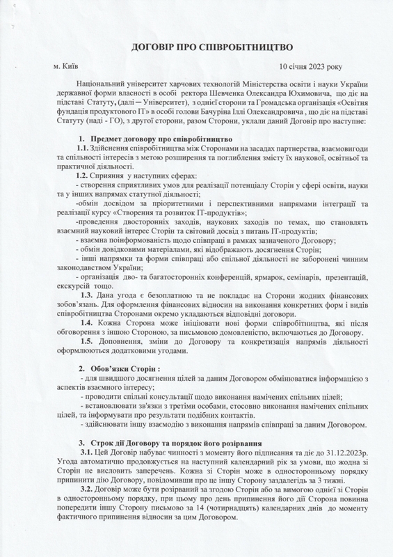 На початку цього року був підписаний договір про співпрацю між нашим університетом і Громадською організацією «Освітня фундація продуктового ІТ», яка тісно співпрацює з продуктовою IT-компанією Genesis.