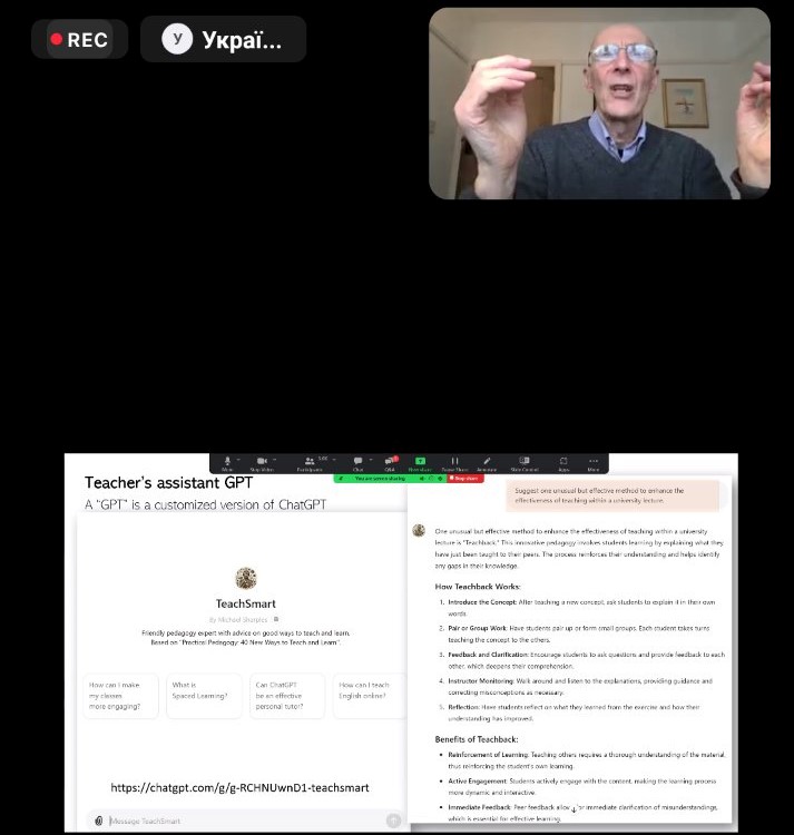 12 грудня викладачі кафедри технології оздоровчих продуктів прослухали лекцію професора Інституту освіти Відкритого університету Великобританії Майка Шарплза на тему «Генеративний штучний інтелект і освіта: можливості та виклики».