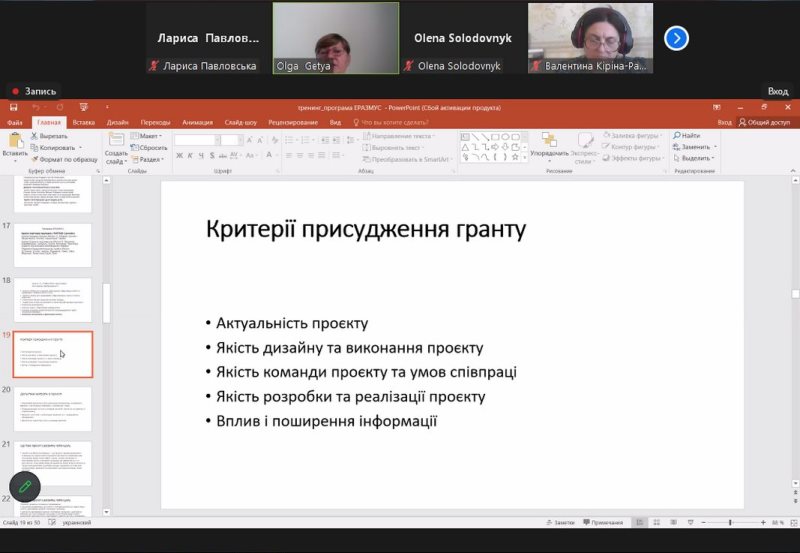 Викладачі та майстри виробничого навчання відділення туризму та готельно-ресторанної справи Волинського фахового коледжу нашого університету взяли участь у онлайн тренінгу-практикуму з написання заявок для участі у міжнародних проєктах, організованому Науково-методичним центром вищої та фахової передвищої освіти.