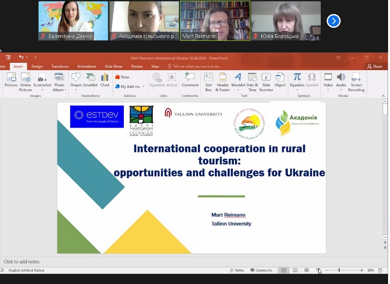 Протягом двох днів учасники заходу слухали виступи естонських експертів з питань розвитку сільського туризму, розглядали сучасні кейси реальних практик естонських власників зелених садиб і директорів туристичних підприємств. Досліджували особливості міжнародного співробітництва в сільському туризмі, його можливості та виклики для України, розвиток туристичних послуг у співпраці різних поколінь і співпраці з конкурентами, управління якістю послугами у сільському туризмі.