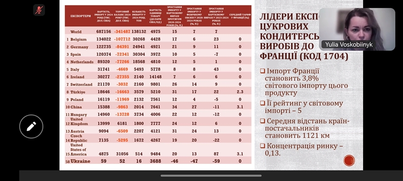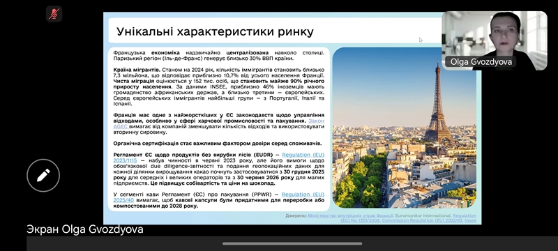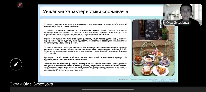 Участь у вебінарі дала можливість поглибити розуміння сучасних ринкових механізмів, інструментів аналітики та тенденцій розвитку світового кондитерського сегменту. Окреслені експертами перспективи співпраці та підтримки експорту створюють додаткові можливості для інтеграції українських виробників у економічний простір Франції та ЄС.