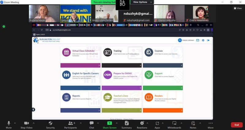 Особливу увагу Галина Чередніченко приділила унікальній онлайн-програмі вивчення англійської мови для дорослих і студентів Burlington English. Ця програма містить різнорівневі курси англійської мови загального вжитку і різноманітні курси професійного спрямування, а також надає повне забезпечення студентові для вивчення мови в умовах змішаного навчання. Програма Burlington English містить унікальний Speech Trainer, який здатний аналізувати вимову окремого студента, створювати унікальний план і забезпечувати цілеспрямовану практику для покращення конкретних потреб вимови. Burlington English також включає активний діалог і рольові ігри, які допомагають студентам покращити свої навички аудіювання та мовлення. Змішаний підхід до навчання Burlington English поєднує полегшене навчання у класі з додатковими можливостями онлайн-навчання студентів.