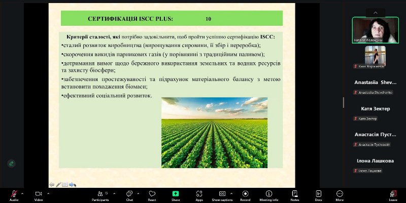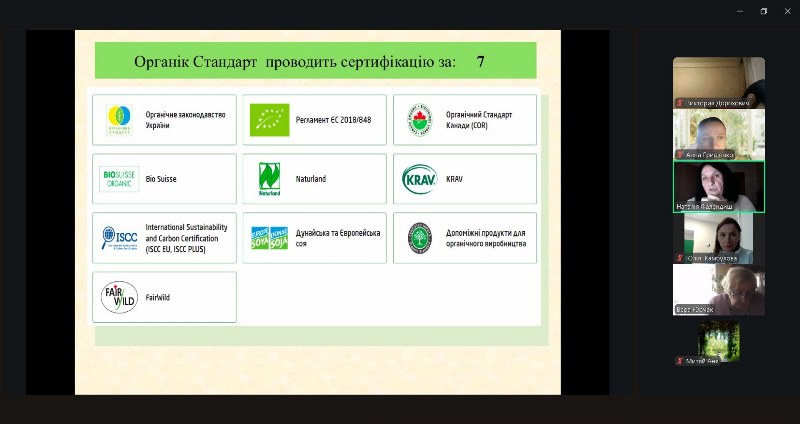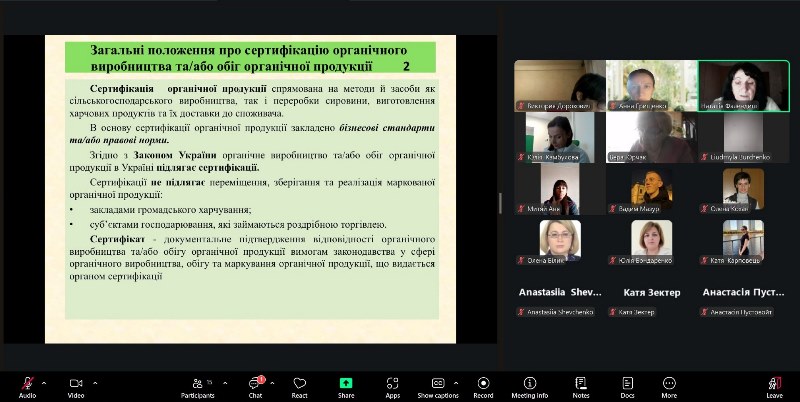 Наталія Фалендиш ознайомила здобувачів освіти із загальними положеннями щодо сертифікації органічного виробництва та/або обігу органічної продукції відповідно до Закону України «Про основні принципи та вимоги до органічного виробництва, обігу та маркування органічної продукції». Акцентувала увагу на важливості процесу сертифікації для виробників, на значені органічного виробництва для розвитку сталого виробництва.