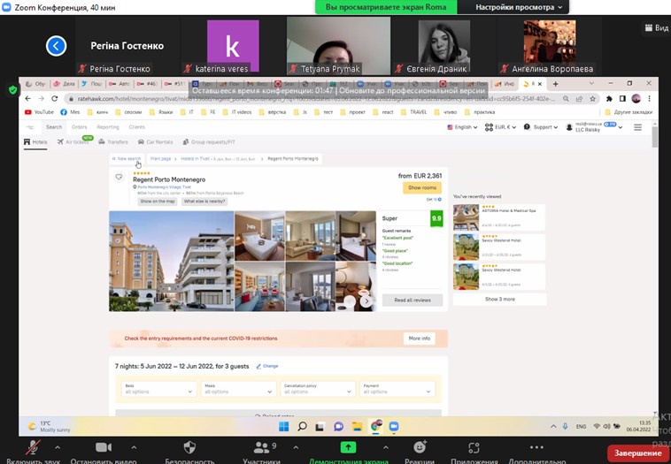 Війна, яка наразі триває на нашій землі і суттєво змінила наше життя, врешті-решт закінчиться, і настане той щасливий час, коли наші студенти та викладачі повернуться до університету. А поки що, на жаль, уже довгий час їх зустрічі відбуваються лише на платформі Zoom. Але з іншого боку, здобувачам освіти й викладачам кафедри туристичного та готельного бізнесу це дає можливість зібратися та обговорити найважливішу для майбутньої роботи наших студентів проблему: використання інформаційних систем у роботі туристичних операторів та агентів.