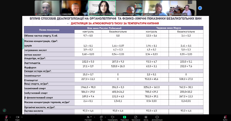 До розширеного засідання кафедри долучилися завідувач і викладачі кафедри біотехнології продуктів бродіння і виноробства, науковці кафедри технології ресторанної і аюрведичної продукції, а також провідні експерти галузі – генеральний директор корпорації «Укрвинпром» Володимир Кучеренко, заступник голови Держпродспоживслужби з питань цифрового розвитку та цифровізації Сергій Захарін, президент Всеукраїнської асоціації барменів (AUBA) Андрій Петровський, директорка з виробництва ПрАТ «Галіція Дистилері» Валентина Рудоквас.