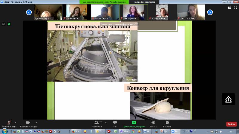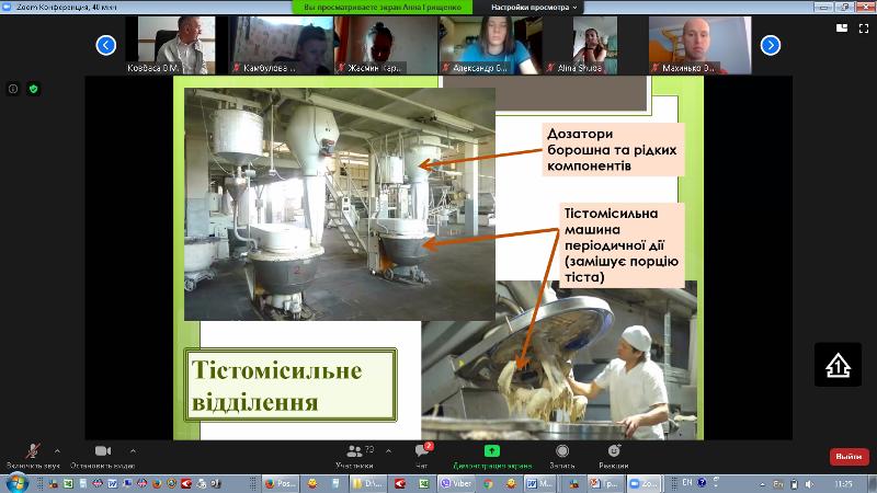 Доцент кафедри технології хлібопекарських і кондитерських виробів Анна Грищенко в режимі конференції ZOOM прочитала відкриту лекцію для здобувачів 2 курсу Навчально-наукового інституту харчових технологій спеціальності 181 «Харчові технології».