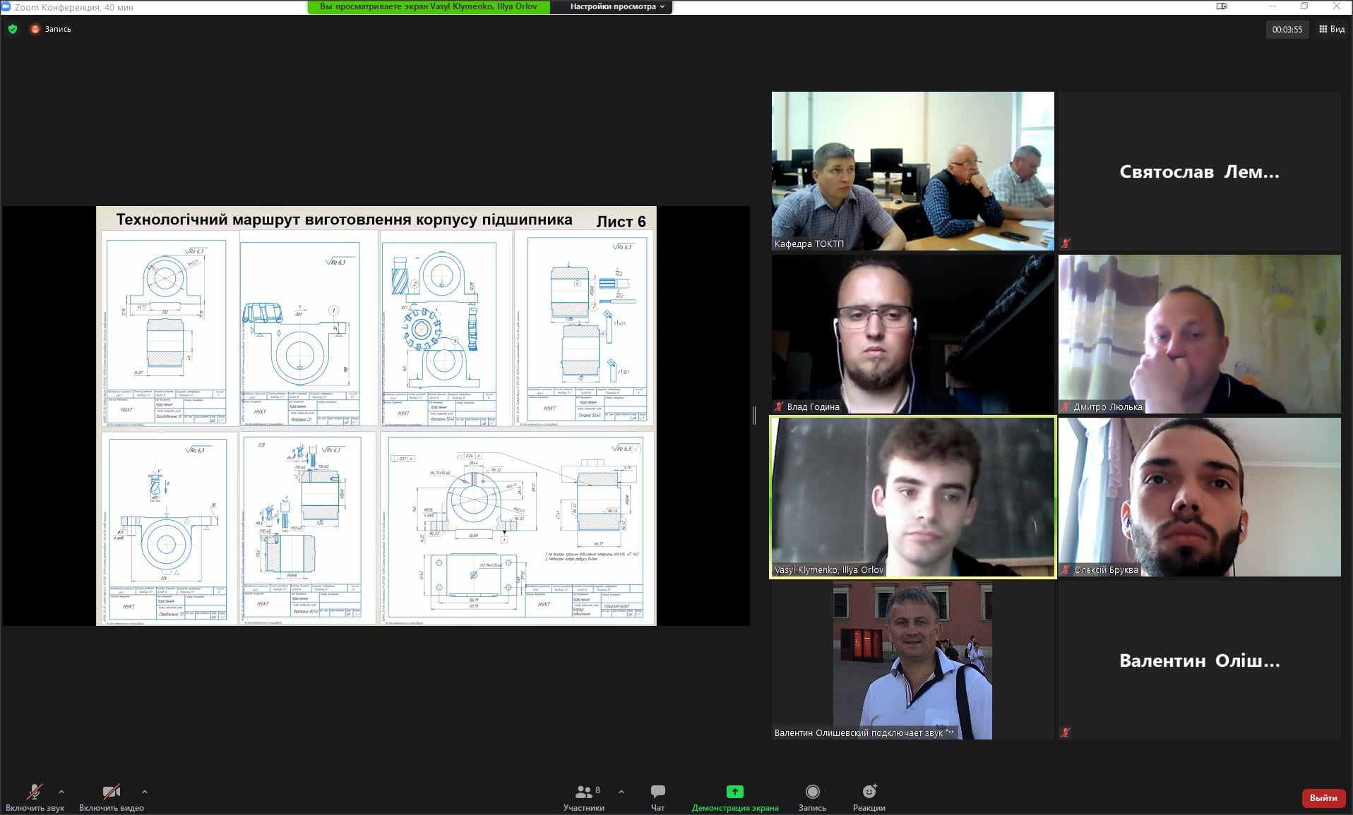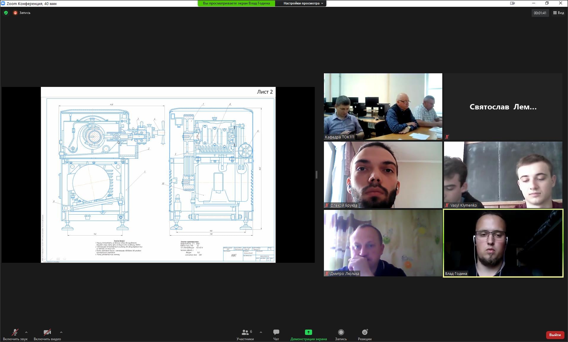11 червня 2021 року на кафедрі технологічного обладнання та комп’ютерних технологій проектування із використанням платформи Zoom розпочалися захисти кваліфікаційних робіт на здобуття освітнього ступеня «бакалавр» зі спеціальності 133 «Галузеве машинобудування», освітньо-професійної програми «Інжиніринг харчових та біотехнологічних виробництв».