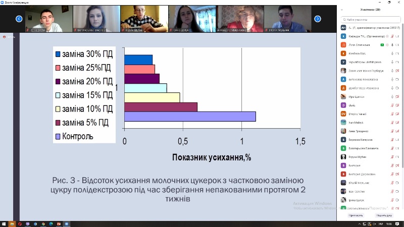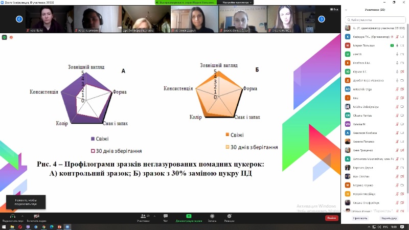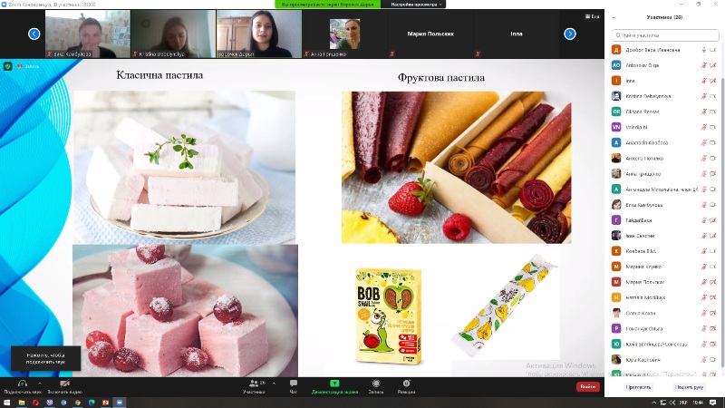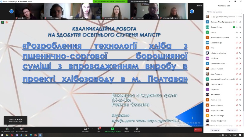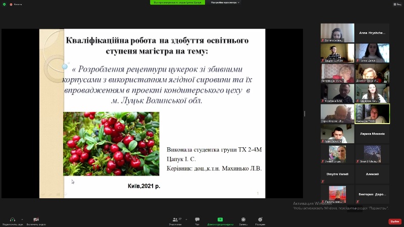 Приємно зазначити, що до онлайн-захисту приєдналися стейкхолдери: головна технологиня ВП «Вінницяхліб» ПрАТ «Концерн Хлібпром» Наталія Мосійчук, менеджерка з підбору персоналу ПрАТ «Концерн Хлібпром» Інна Овчаренко, начальниця виробництва «ВП Цех кондитерських виробів» (ПрАТ Концерн Хлібпром, м. Львів) Ольга Романчук.