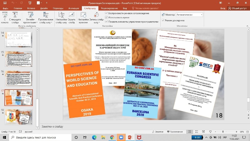 Багато здобувачів почали дослідження ще на четвертому курсі, тому мали змогу детально вивчити питання та провести низку експериментів, розробити нові рецептури виробів дієтичного та функціонального призначення. У відповідних розділах кваліфікаційних робіт було наведене обґрунтування їх впровадження на підприємствах галузі. Практична цінність і наукова новизна деяких розробок уже підтверджена патентами на корисні моделі та актами виробничих випробувань. У кожній роботі були представлені публікації у збірниках тез конференцій або у наукових фахових виданнях.