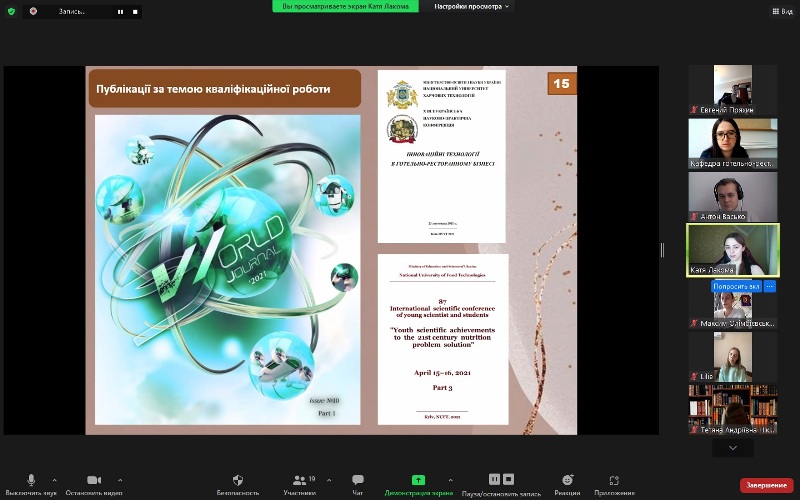 За результатами науково-дослідної роботи магістрантів були опубліковані статті у фахових і закордонних виданнях, тези і матеріали доповідей міжнародних і всеукраїнських наукових конференцій, отримані патенти України на корисну модель, здійснено апробацію в умовах закладів ресторанного господарства засобів розміщення.