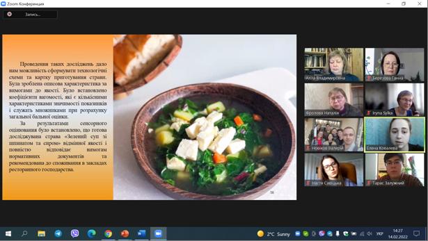 14 лютого 2022 року на кафедрі технології ресторанної і аюрведичної продукції відбувся захист кваліфікаційних робіт здобувачів освітнього ступеня «Магістр» за спеціальністю 181 «Харчові технології», освітньо-професійної програми «Технології аюрведичних харчових продуктів» денної форми навчання.