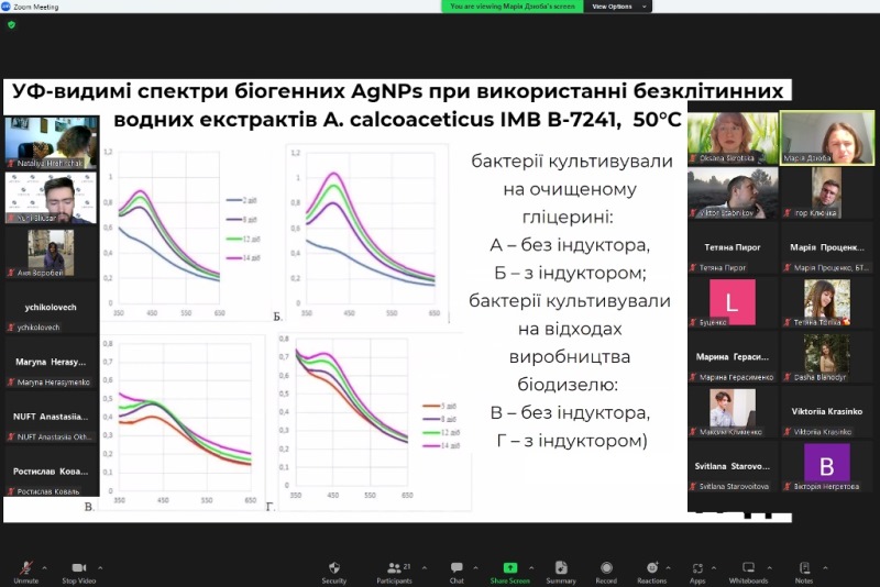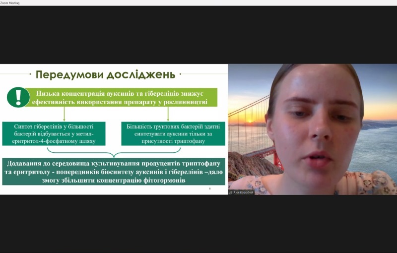 ІІІ місцеМарія Проценко (група БТ-4-2) з роботою «Біотрансформація селеніту у наночастинки та їх подальше використання для біоремедіації довкілля та у вигляді БАД» і Дар’я Благодир (група ПФБ-1-1М) з роботою «Бактерії роду Enterobacter як фактор регуляції антиадгезивної активності поверхнево-активних речовин Acinetobacter calcoaceticus IМВ В-7241».