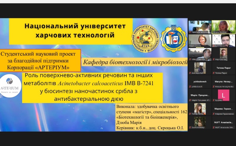 Корпорація «Артеріум» постійно підтримує молодих біотехнологів НУХТ і реалізує для них різні заходи. Одним із них є, започаткований ще в 2020 році, конкурс наукових робіт. Здобувачі освіти кафедри біотехнології і мікробіології (БТМ), незважаючи на усі негаразди, займаються науковими дослідженнями і щороку беруть участь у конкурсі.