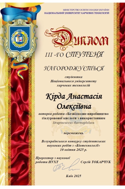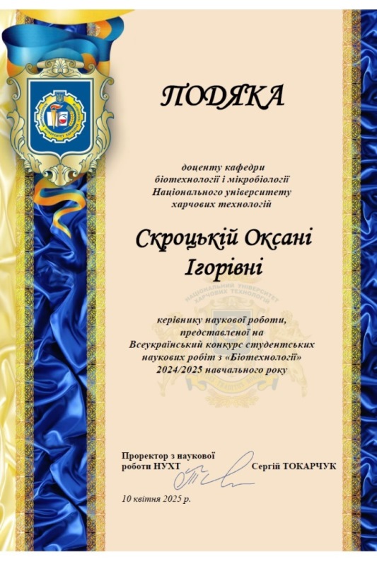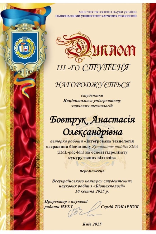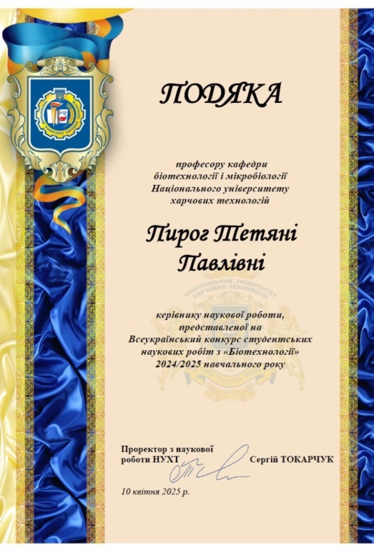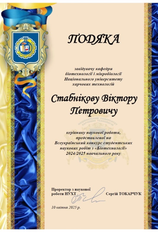Всеукраїнський конкурсу студентських наукових робіт зі спеціальності «Біотехнології» 2025 року завершено і на кафедрі біотехнології і мікробіології підвели його підсумки.