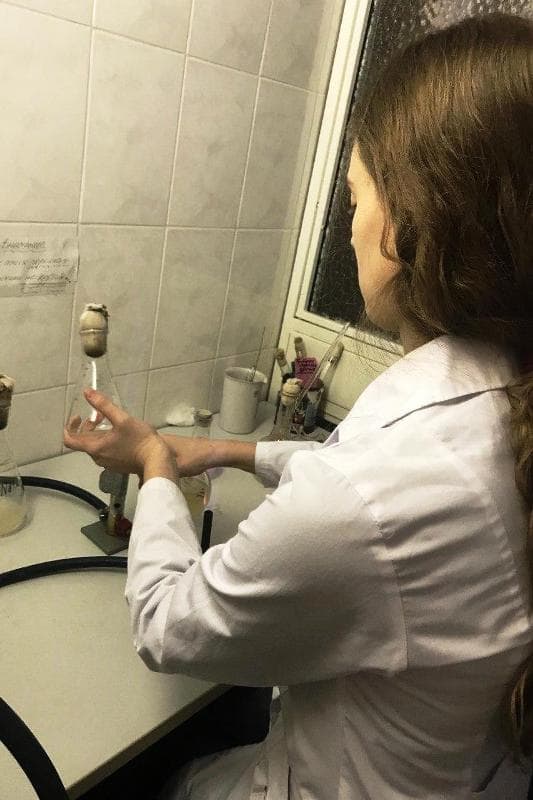 Не менш захоплююча історія науковця-початківця, студентки групи БТ-3-1 Аріни Сарницької (науковий керівник – д.т.н., професор Віктор Стабніков). Вона досліджує уреазну активність у насінні рослин, що займає важливе місце у геоінженерії, геоекологічній інженерії та будівельній біотехнології, адже саме ці напрямки науки займаються розробленням і впровадженням біоцементації – процесу, в якому мікроорганізми та суміші солей використовуються як замінники цементу.