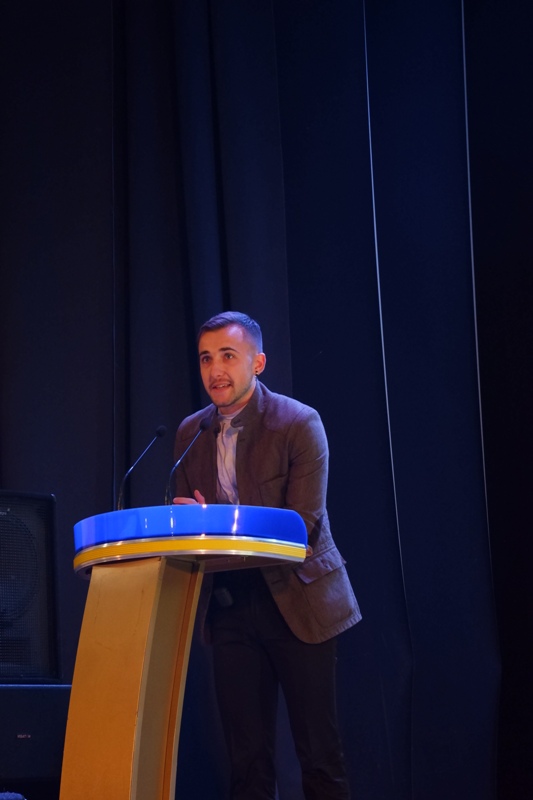 Своїм студентським досвідом поділилися й привітали першачків у студентській родині НУХТ заступник голови студентської ради університету Станіслав Усенко й випускник університету, голова студентської ради НУХТ у 2018-2021 роках Олександр Висоцький.