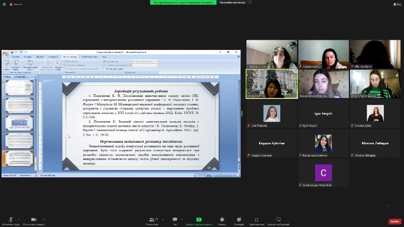 Магістерські дослідження окремих випускників були рекомендовані до впровадження в освітній процес – Катерини Подмокової (керівник – к.х.н., доцент Ігор Фесич), Олександри Нелюбіної (керівниця – к.т.н., доцентка Олена Подобій) та Микити Лебедєва (керівниця – к.х.н. доцентка Наталія Сабадаш).