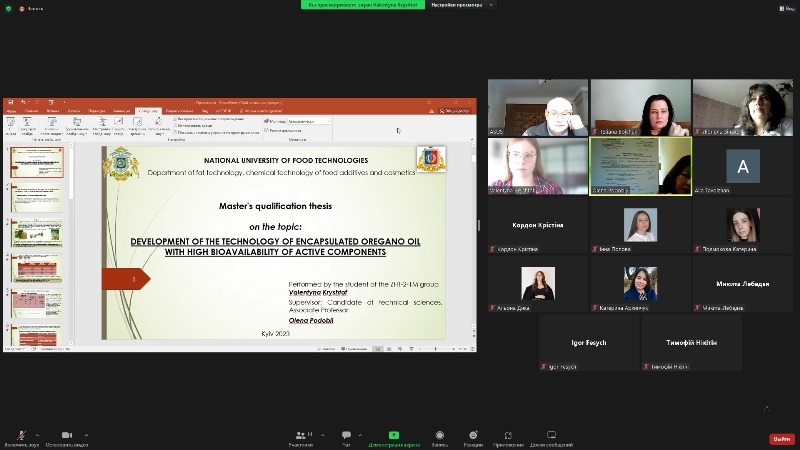 На кафедрі технології жирів, хімічних технологій харчових добавок та косметичних засобів 14, 16 і 21 лютого 2023 року відбулися публічні захисти 14 кваліфікаційних робіт здобувачами освітньо-кваліфікаційного рівня «Магістр» денної та заочної форми навчання за спеціальністю 161 «Хімічні технології та інженерія».
