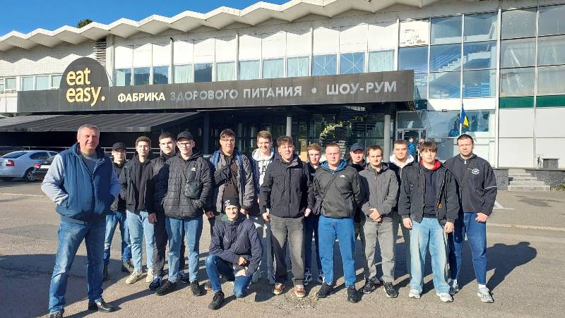 Із зацікавленням відбулося вивчення виробничих процесів та обладнання в реальних умовах для здобувачів груп ОП-4-7, ОП-4-7ск, ОХ-4-7ск, ОХ-2-7ск, яке провели для них спільно з директором з виробництва Євгеном Хромцем, головним технологом підприємства Назаром Косіковським та старшою технологинею Інною Ренейською викладачі кафедри технологічного обладнання та комп’ютерних технологій проєктування доцент Роман Якобчук, професор Валентин Олішевський і наставник Євген Бабко.