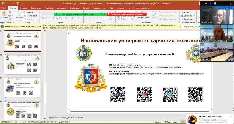 15 жовтня 2024 року професорка кафедри технології хлібопекарських і кондитерських виробів Олена Білик і доцентка цієї ж кафедри Юлія Бондаренко, а також директорка Навчально-наукового інституту харчових технологій Оксана Кочубей-Литвиненко провели виховну годину у форматі гостьової лекції у двох академічних групах випускного курсу Волинського фахового коледжу НУХТ.