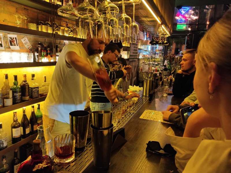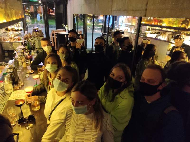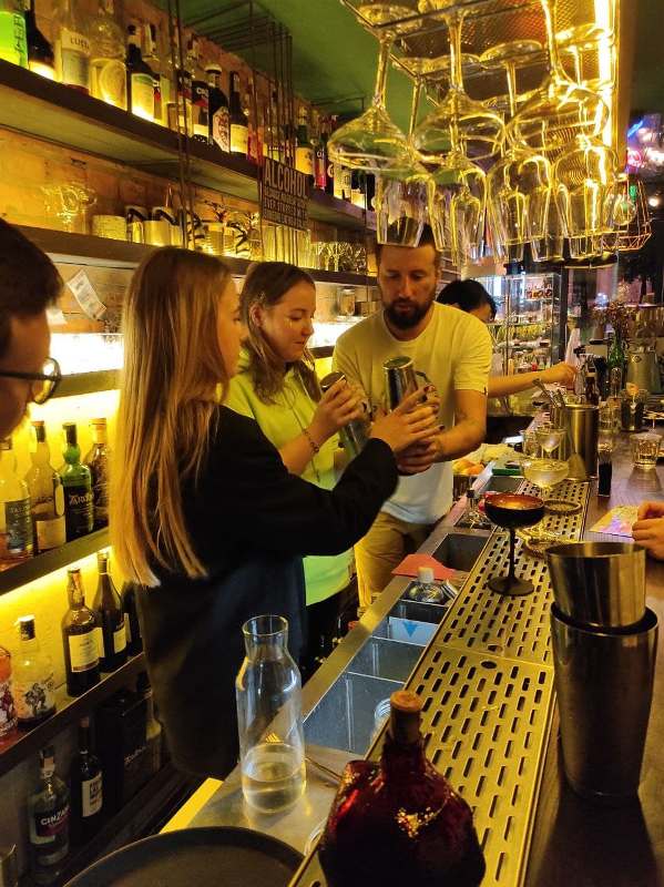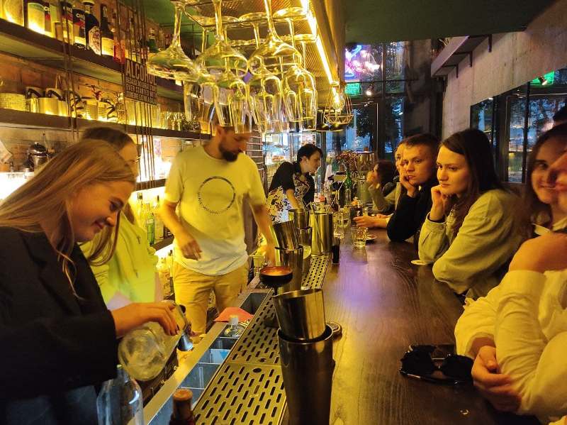 Неймовірний і досвідчений фахівець барної справи Герос, який у професії з 2006 року і обожнює її, як справжній бармен вважає, що коктейлі у закладі стоять на другому місці, а перше – завжди за чудовою атмосферою спілкування і гостинності. Допомагав у проведенні заходу також наш натхненний випускник Ілля Петровський.