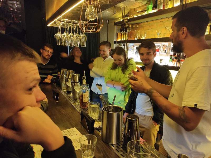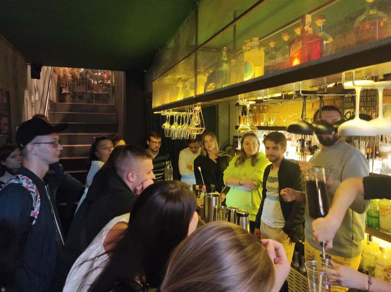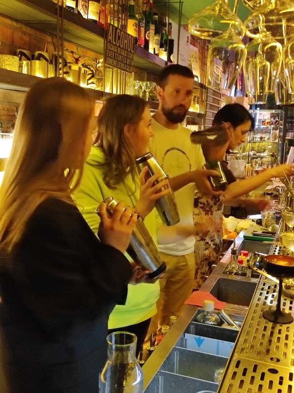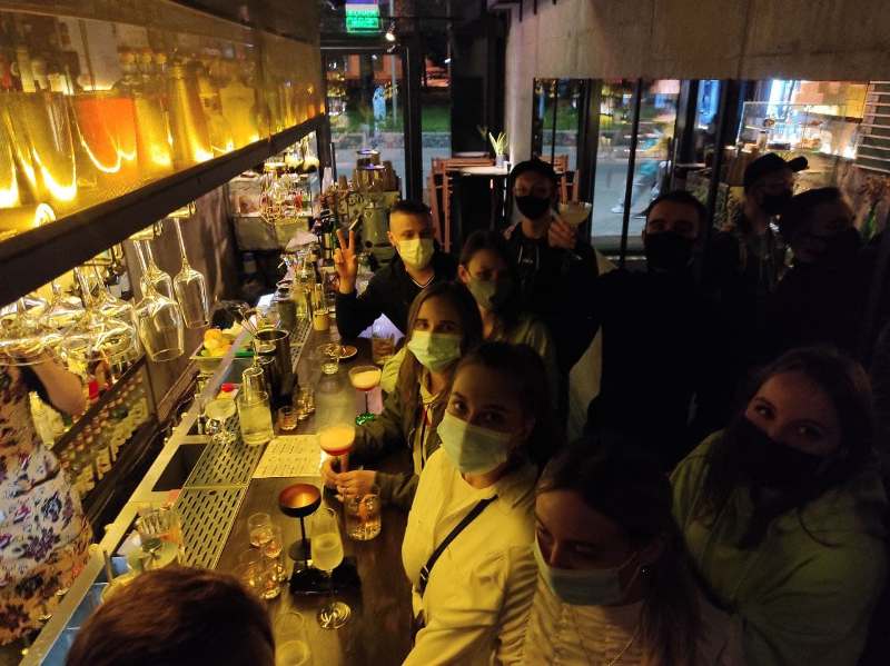 Детальний екскурс в секрети і тонкощі облаштування бару, нюанси менеджменту цього сегменту ринку, інструментарій бармена, сучасні техніки оптимізації процесу приготування коктейлів і навіть про винаходи хімії, які допомагають спростити роботу бармена, все це і більше дізналися наші здобувачі. Під керівництвом маестро Героса магістранти приготували індивідуальні витончені та феєричні коктейлі за барною стійкою. Практичну частину довершила демонстрація майстерності ведучого заходу. Серед зроблених коктейлів були як класичні Oldfashioned, Negroni, Knickerbocker, CloverClub, так і фірмові трендові пропозиції і розробки.