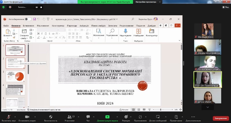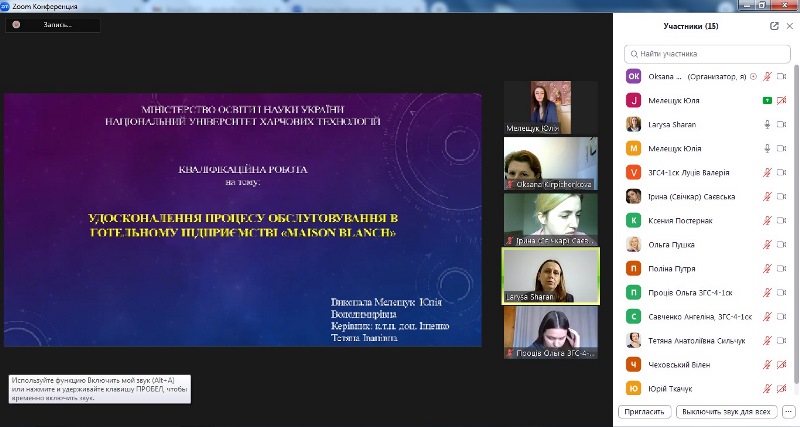 На кафедрі готельно-ресторанної справи вперше успішно захистили кваліфікаційні роботи здобувачі бакалаврського рівня вищої освіти спеціальності 241 «Готельно-ресторанна справа», освітньо-професійної програми «Готельно-ресторанна справа», заочної зі скороченим терміном форми здобуття освіти.
