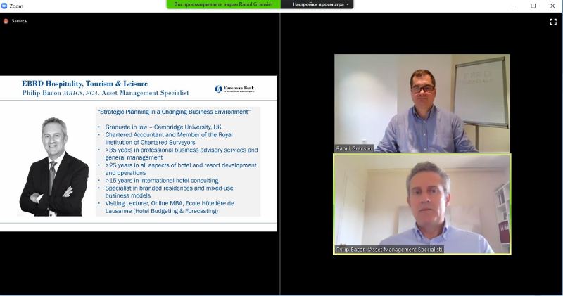 – Philip Bacon (Asset Management Specialist @EBRD Advice for Small Businessess) – має понад 25-річний досвід у всіх аспектах розвитку готелів і курортів, включаючи понад 15-річний міжнародний досвід консультацій щодо оцінювання готелів і техніко-економічних обставин, пошуку операторів, управління активами та стратегічного бізнес-планування для власників, кредиторів та операторів по всій Європі, а також в Африці, на Близькому Сході та в Карибському басейні.