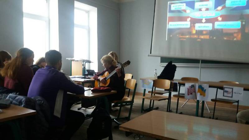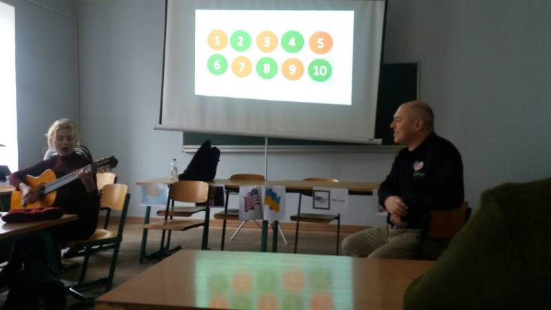 На занятті був присутній запрошений гість із Сполучених Штатів Stuart Snuggs, який допомагав студентам дізнатися більше про Америку та її особливості.
