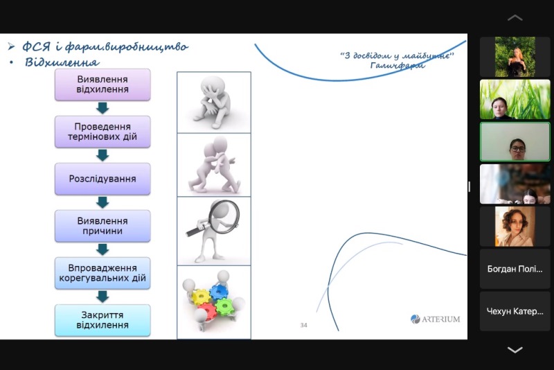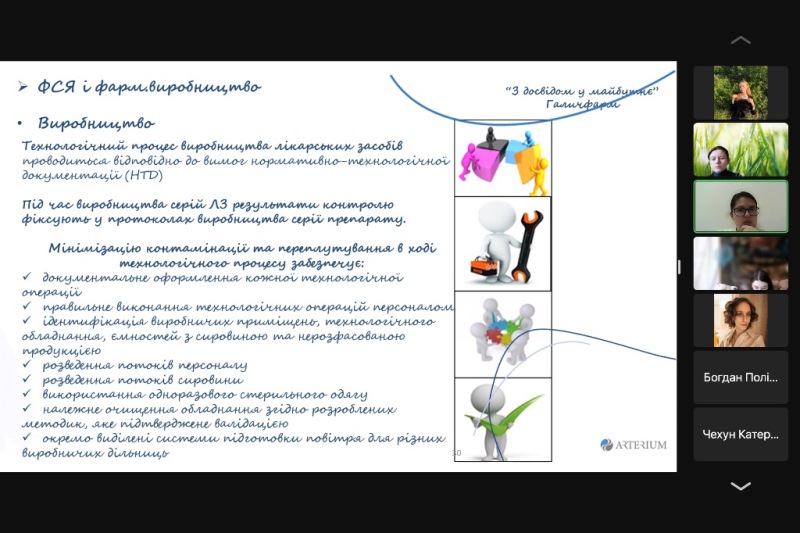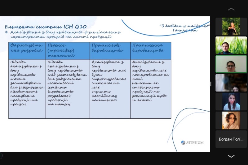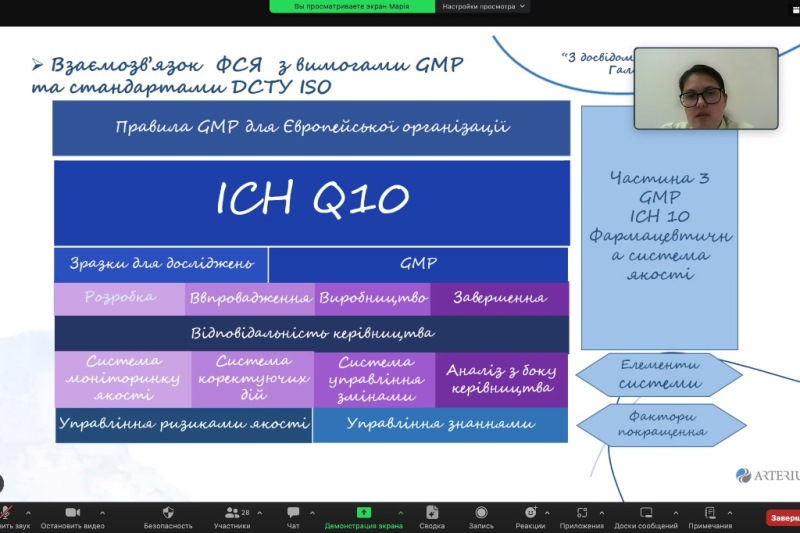 Під час лекції були охоплені питання та нормативні документи, з якими здобувачі вже ознайомлювалися та обговорювали на заняттях з дисципліни «Нормативне забезпечення біотехнологічних виробництв». Тому запропонована, на перший погляд доволі складна тема, сприймалася студентами легко та з цікавістю завдяки вже отриманим базовим знанням, а також дозволила розшити й поглибити практичні навички з питання фармацевтичної системи якості.