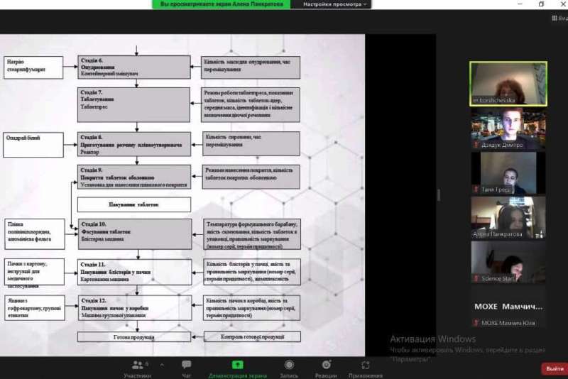 Комунікувати допомагала Zoom-конференція, а спільний Google-док дозволив не тільки поєднати частини доповіді, а й постійно виправляти недоліки і допомагати один одному. Успішне виконання технічного завдання було зумовлено не тільки чітким планом дій, а й різнобічністю команди, до складу якої увійщли хіміки-технологи, фармацевти, біотехнологи. Всі ці фактори, а також сумлінна праця сприяли продуктивній роботі і створенню нового генетичного противірусного препарату Ретровіну з АФІ Ритонавір у двох лікарських формах, а також організації ліній виробництва цих лікарських засобів.