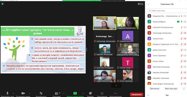 Здобувачі освітньої програми «Технології в ресторанному господарстві» 27 вересня мали унікальну можливість відвідати онлайн-лекторій у межах вивчення навчальної дисципліни «Інноваційні ресторанні технології», який проводила співвласниця компанії «Дідо Джозеф» Іванна Бейдель за участі професорки кафедри технології ресторанної і аюрведичної продукції Олександри Нєміріч та асистентки Владлени Михайленко. На лекторії були присутні викладачі кафедри та представники деканату факультету готельно-ресторанного та туристичного бізнесу.
