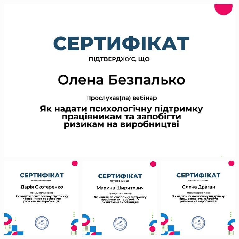 Програма вебінару була насиченою і включала питання: вплив стресових чинників на психіку людини; критерії визначення психічного стану працівника; перша психологічна допомога на виробництві; практичні вправи для самодопомоги. Актуальним був детальний розгляд, як надати допомогу і діяти у випадках паніки, страху, рухового збудження, дезорієнтації, нервового тремтіння, плачу, коли працівник у ступорі.