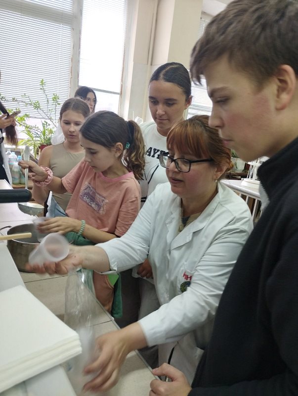 Увесь колектив сумлінно готувався до зустрічі гостей з київських закладів загальної середньої освіти. Викладачі кафедр харчової хімії, технології молока і молочних продуктів, технології цукру і підготовки води та технології зберігання та переробки зерна доклали максимум зусиль, щоб гості – учні столичних ліцеїв і шкіл отримали корисні знання та навики з харчової хімії і харчових технологій.