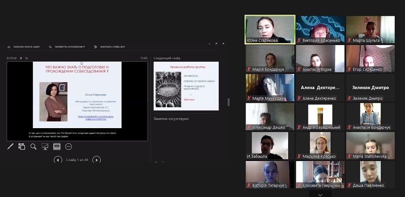 Як пройти співбесіду , щоб вас відразу прийняли на роботу; як підготуватися; як відповідати на питання; що казати… Докладний розбір проходження співбесіди на практиці для студентів-біотехнологів 4 курсу під час гостьової лекції здійснила тренерка з компанії TriglavInternationalLLC (партнера корпорації «Артеріум») Юлія Старикова.