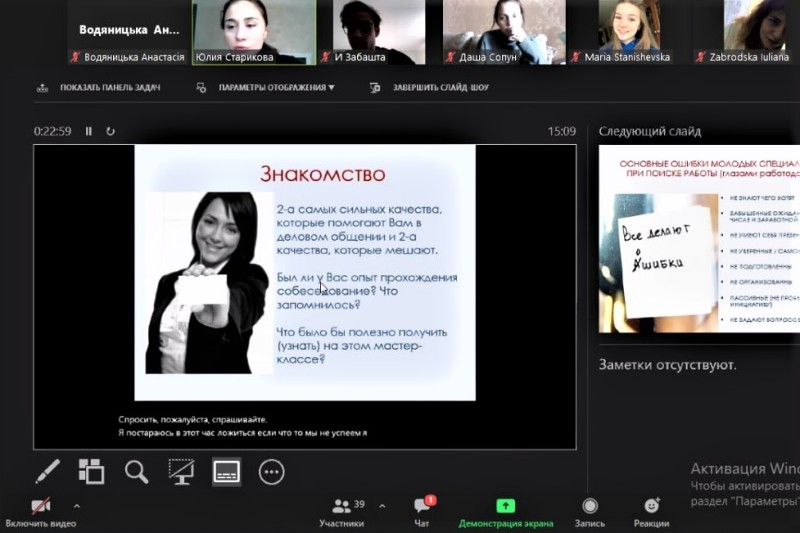 Дуже сподобалася студентам і запропонована активність у вигляді тренінгу. Такий формат дозволив не лише збагнути теоретичні основи та всі правила в плані працевлаштування, але й закріпити знання на практиці, дав можливість розповісти про свій досвід, отримати рекомендації стосовно майбутнього працевлаштування.